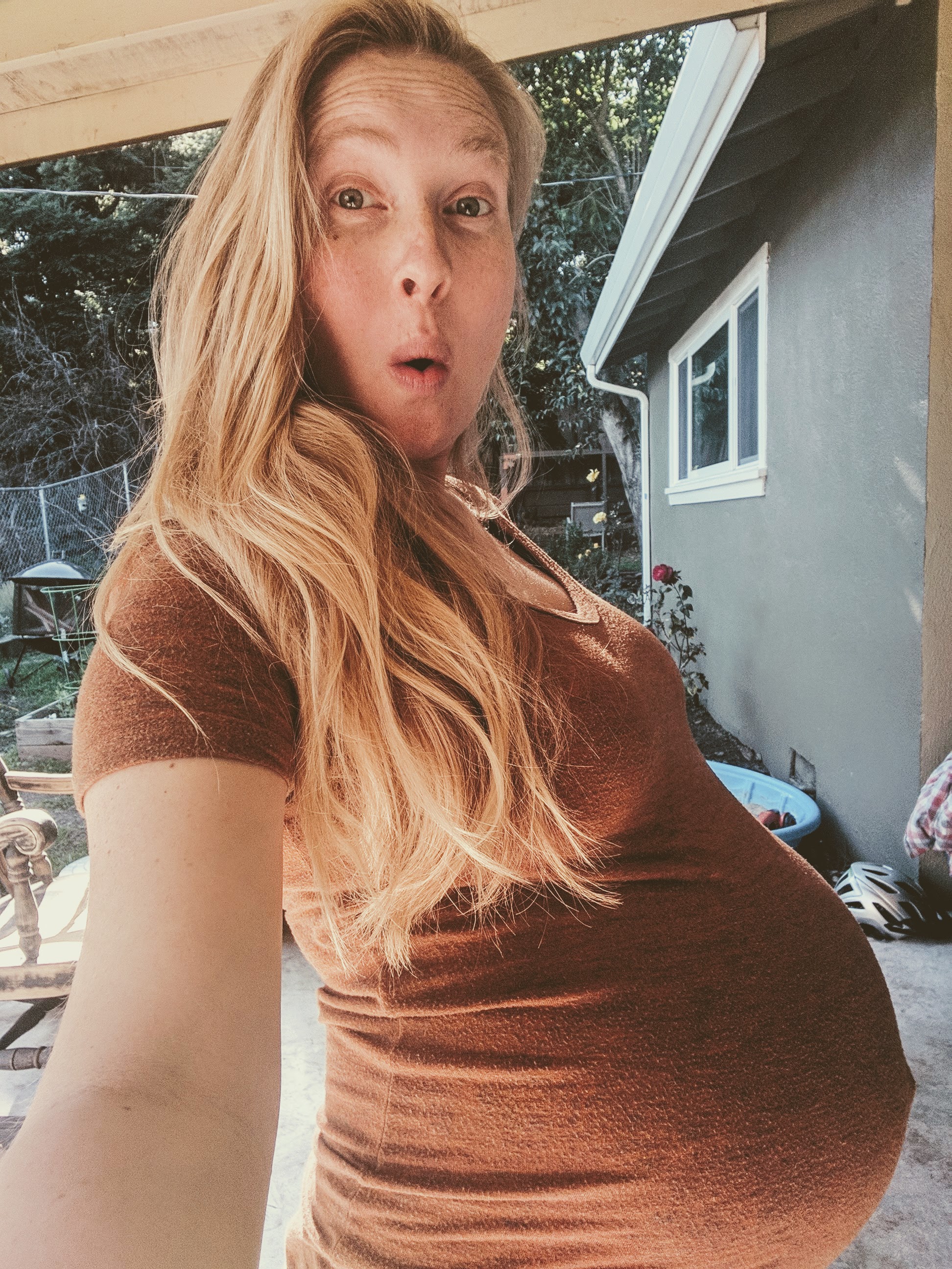 So anyway, we had completed a total remodel of our kitchen and subsequently our guest bathroom and when I was this pregnant:
