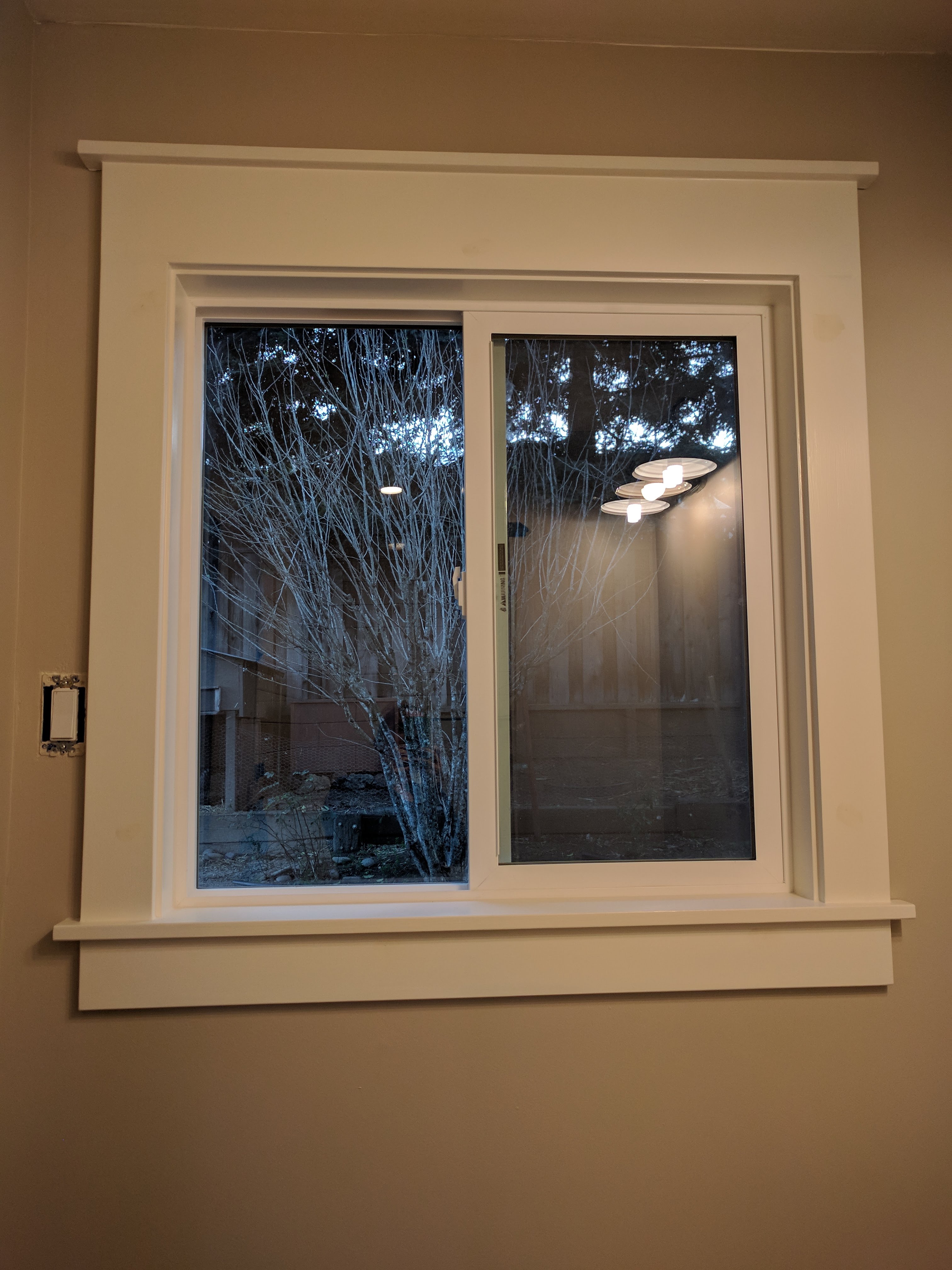 We pulled out an old frosted window and replaced it, in addition to adding trim to complete the look.