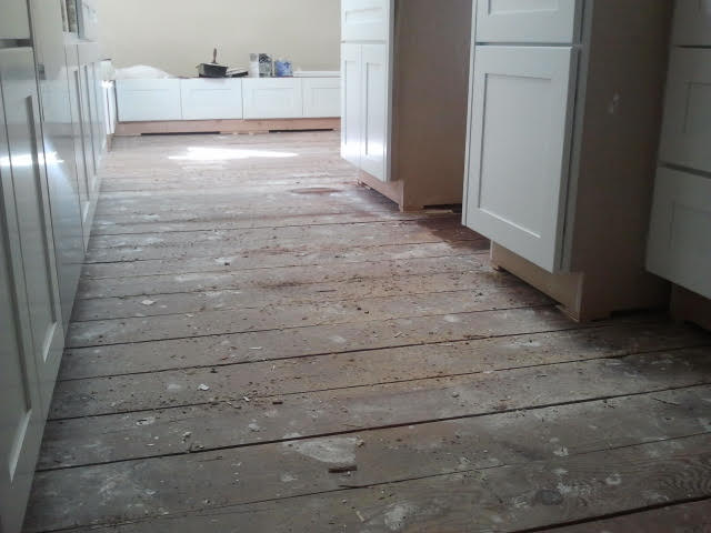 I actually kind of love that the sander left these big grooves in the floor. The look is that of 100 year old farmhouse wood and I love the lived in look.