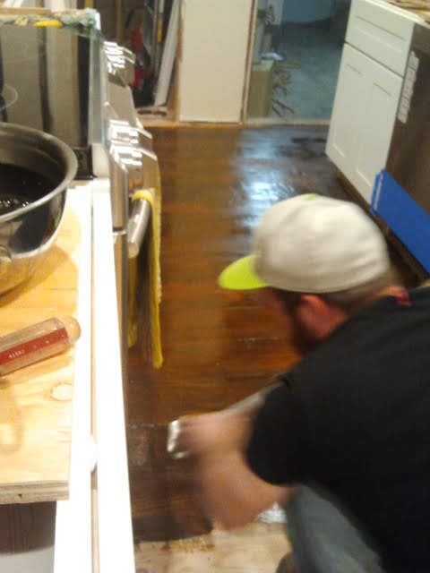 Initially, we were going to go with a faux-wood tile flooring for the kitchen. When we (ahem, Brian) ripped up the linoleum, I had a little problem. I fell in love. With the wood underneath that is. Brian patiently explained that this was called sub-floor and as the name implied, it belonged SUB or under the floor.