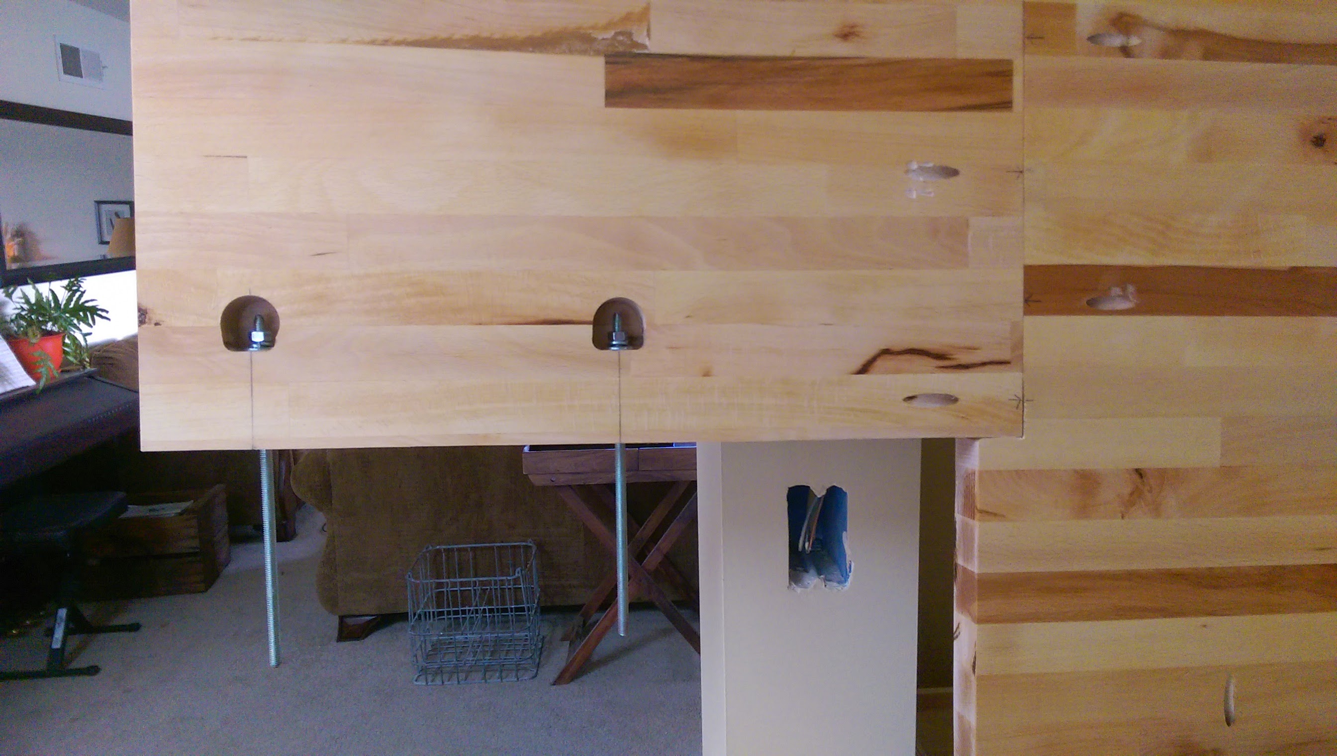 “The butcher block counter that was to be the peninsula needed to wrap around the columns and be as monolithic as possible to prevent cracks at the joints after finish, hence the tricky router pockets and all-thread pictured below.” -BR