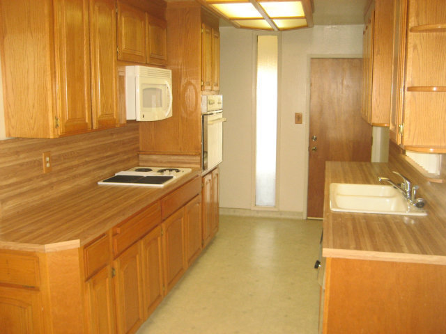 In the above photo you can see the new small pocket door leading to a new pantry. The photo below shows the old set-up.