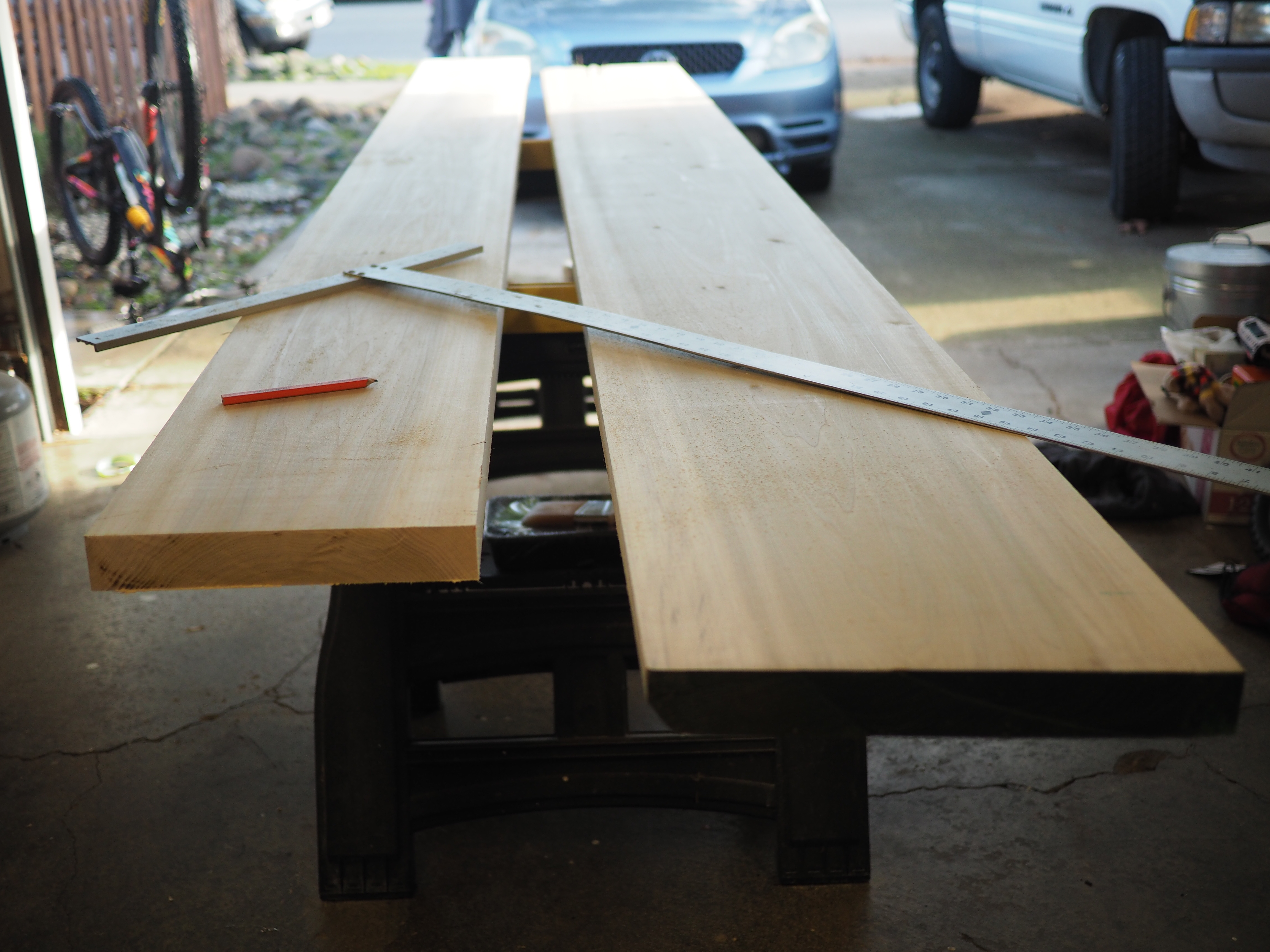 After some searching at our local lumber yards, Brian was able to score some gorgeous 1 and 3/4″ Poplar for 135 bucks for two 8′ pieces. He got it from http://www.aurahardwoods.com/
