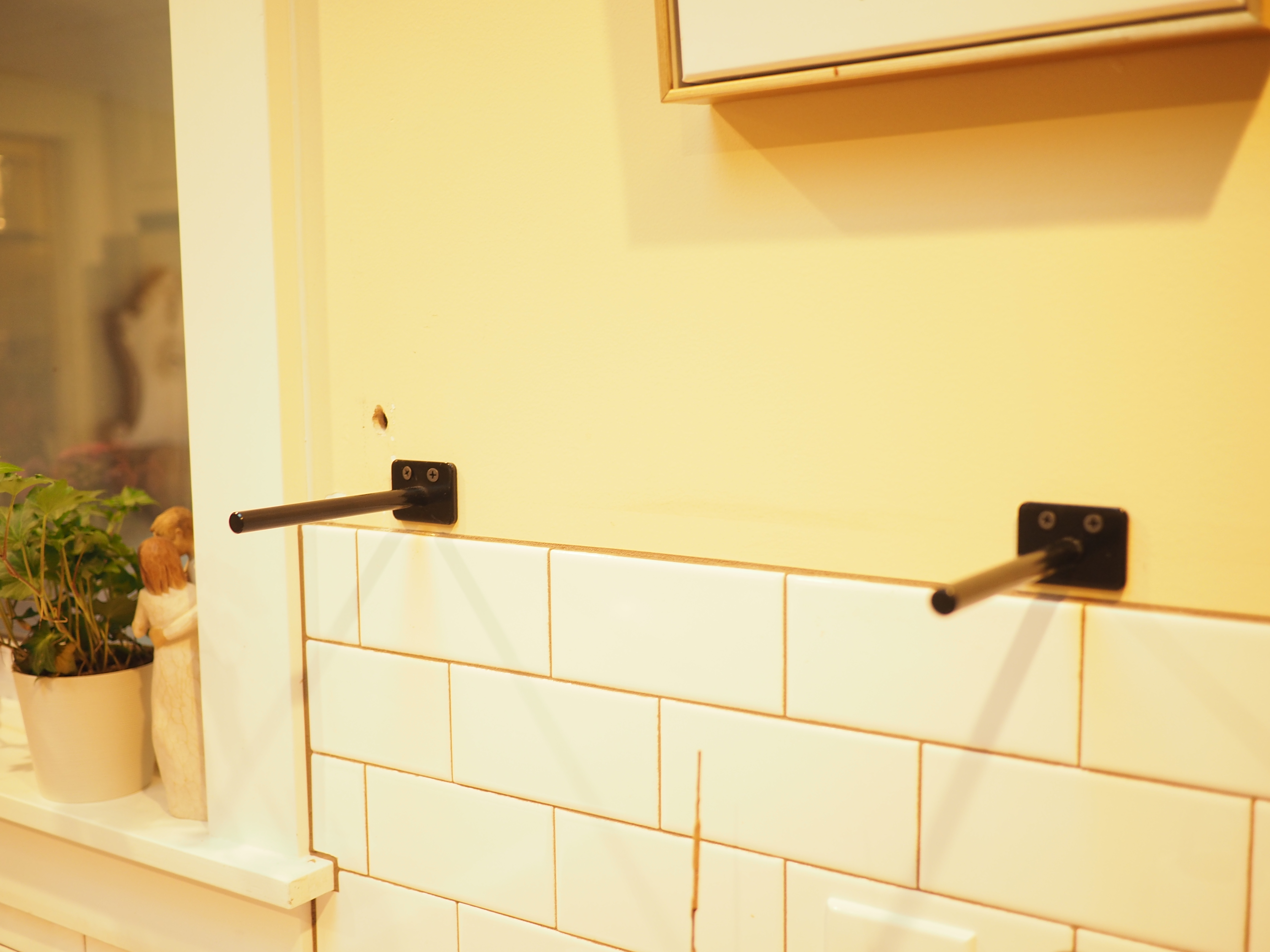 Once the stain had dried, it was time to fix the shelves to the wall. Using a stud-finder the floating shelf brackets were simply screwed in at the studs. You can get them on Amazon here; https://www.amazon.com/DAKODA-LOVE-Floating-Brackets-Supports/dp/B073WQ3GHW?ref_=fsclp_pl_dp_2