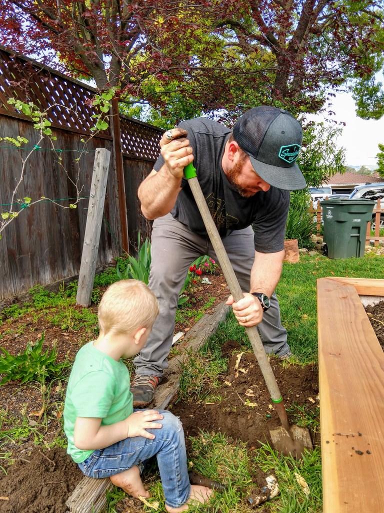 So in light of these ramblings, we wanted to show how quick and easy it is to do so YOU can do it too! We chose to go with a simple raised bed for our front yard patch for several reasons. For one, we like the aesthetic of the wood planter boxes. Two, we were able to have more control over our soil, and lastly it helps to keep pests (and little hands!) off the plants. In theory.