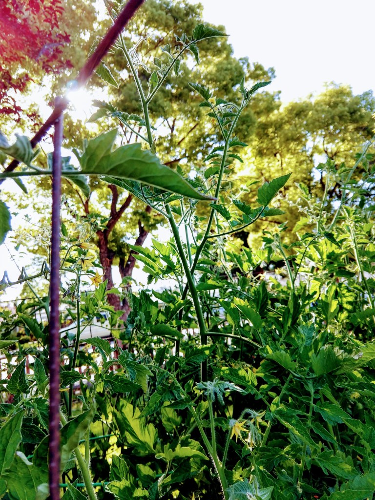 Spring here in California has come with an unusually lush riot of green and blossoms. Every day a new tendril unfolds, a new leaf pops up, and the tomatoes are hinting at a bumper crop soon to come.